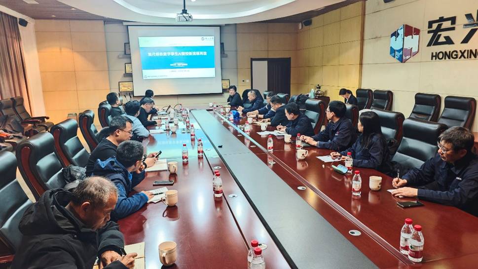 交流中,宏兴钢铁技术质量部副部长苗自峰、技术质量部技术工程师高华军围绕企业生产运行与技术提升需求进行了交流。现场反映,带钢质量缺陷具有“随机、偶发”特征,原因追溯与排查难度较大患。同时,1580带钢机组曾出现4~5次偶发性板形异常,影响质量处理与生产稳定性。由于缺陷出现不稳定,过程数据与样品留存不足,难以形成“缺陷—工艺参数—设备状态”的闭环复盘。交流还就镁合金轻量化趋势进行了探讨,在机器人、低空无人机等场景应用前景突出,产业化正加速推进。双方同时沟通了校企项目申报路径,明确需以合作成果、论文专利、合同及经费账目等作为支撑,推动问题梳理。